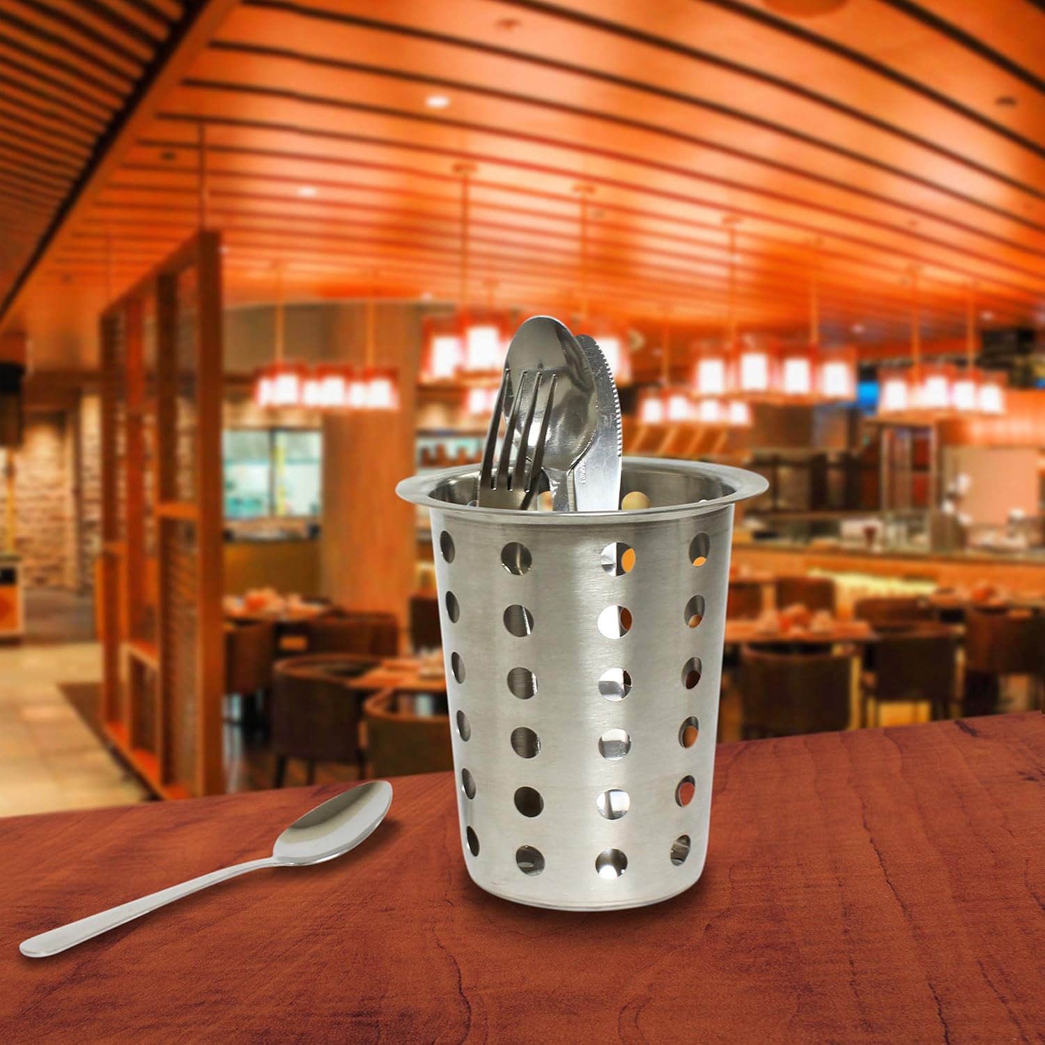 The perforated design with evenly spaced drain holes allows water to flow out easily, keeping your cutlery dry and hygienic. Its sturdy base provides stability, while the compact cylindrical shape makes it perfect for countertops, sinks, or dining areas.