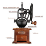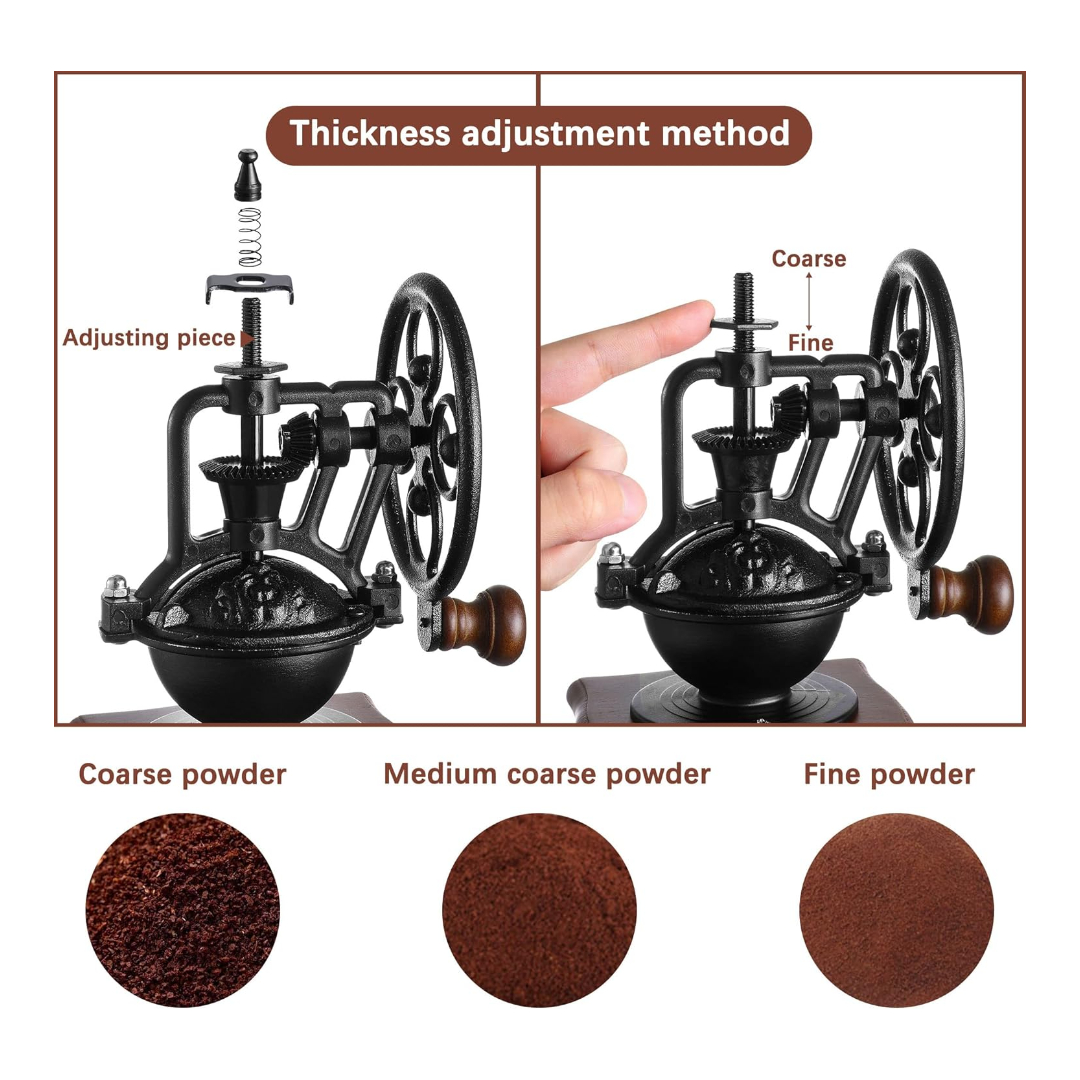 • Classic Vintage Design with durable cast iron grinder and solid wood base